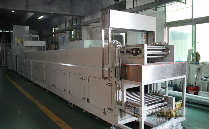 生產流程:1.治具到達上件工位→→→2.機械手取件放置→→→3.進烤爐升溫階段(速度溫度均可調)→→→4.退火階段(速度溫度均可調)→→→5.下風冷卻(2-5分鐘可調)→→→6.治具到達下件工位→→→7.治具空走返回上件工位;